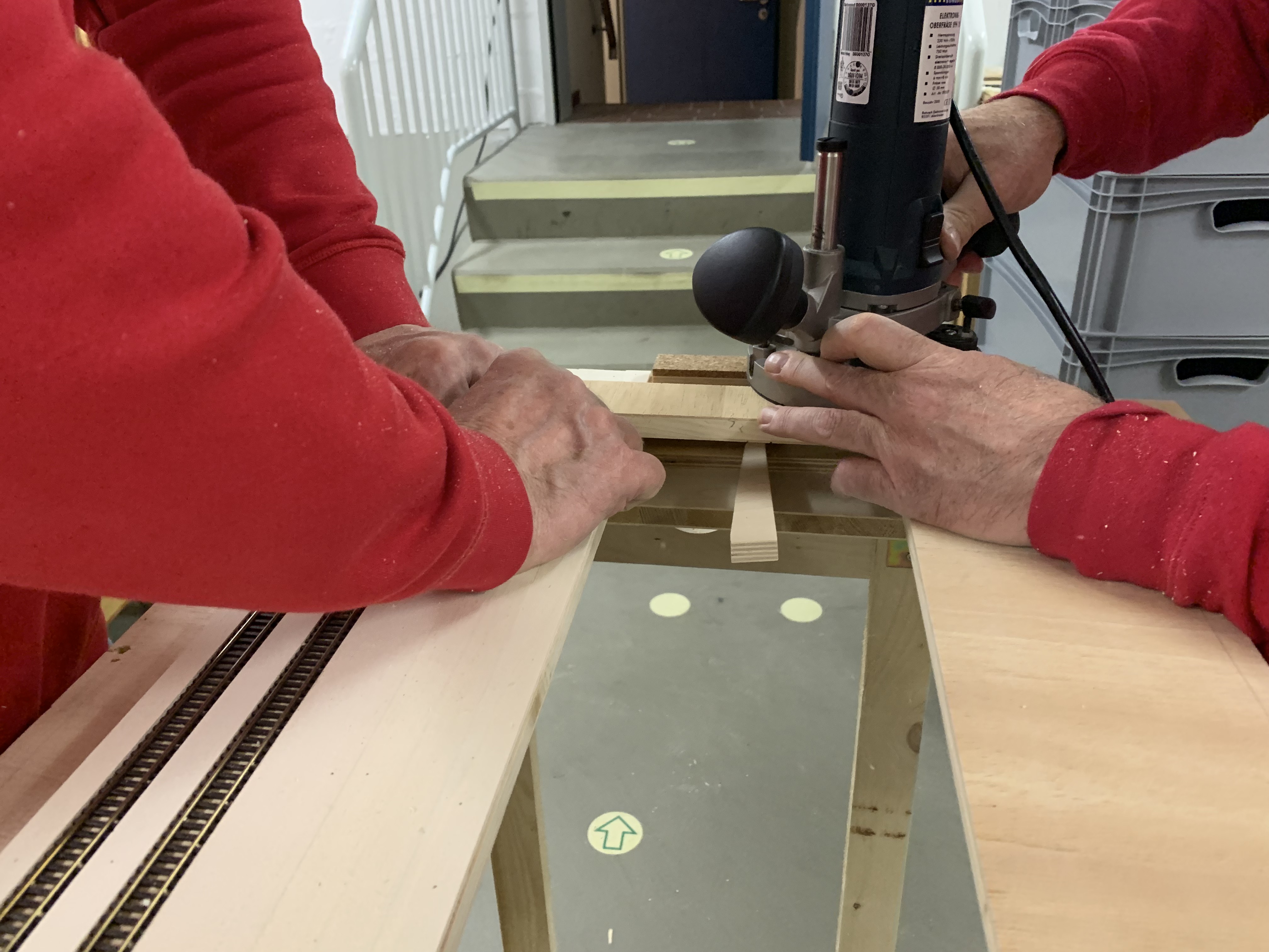 Mit der Oberfräse wird die gesägte Öffnung nachbearbeitet. Das Anlegen des Anschlags war ein wenig trickreich.